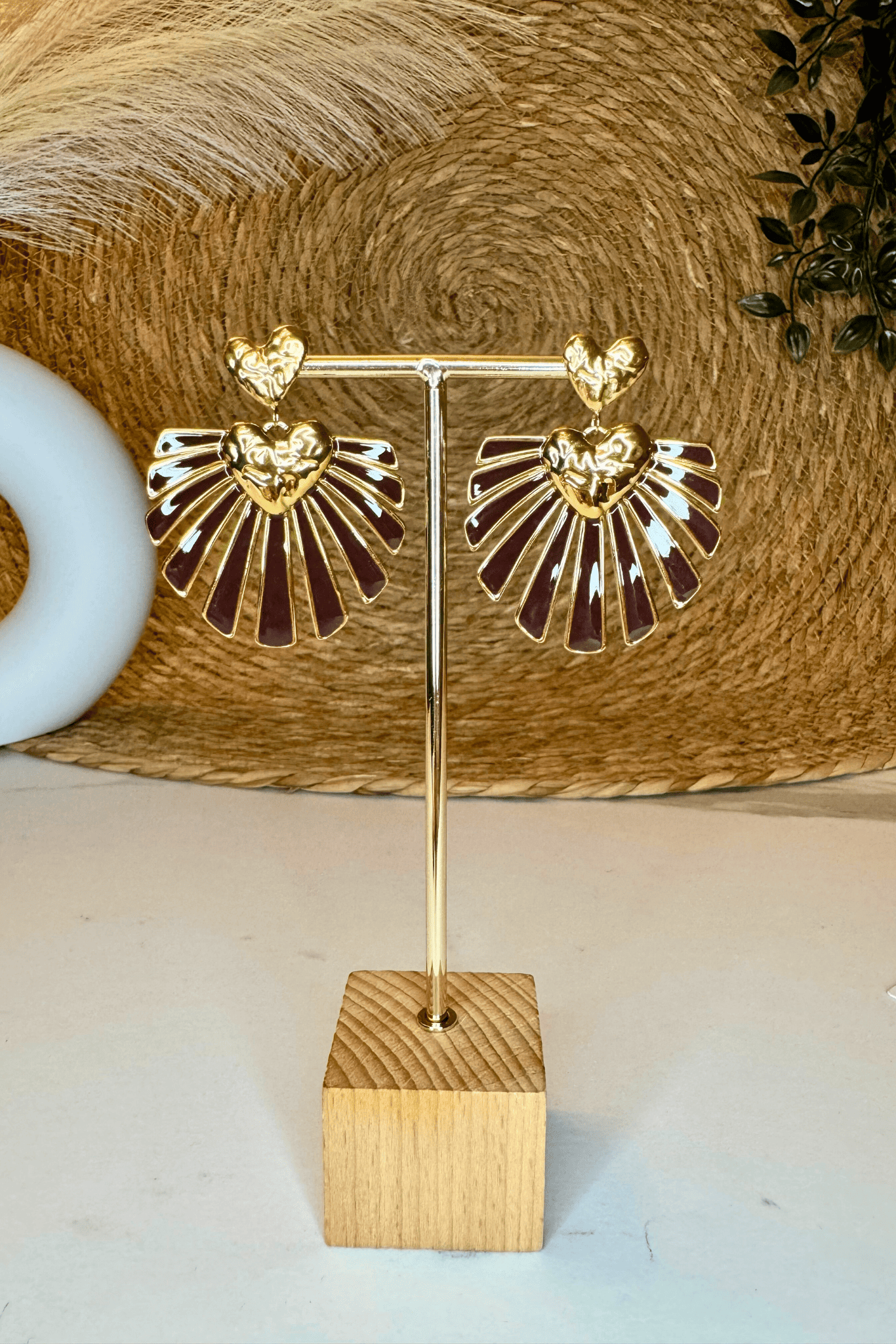 Leur cœur doré en relief, travaillé comme une pièce d’art, s’ouvre sur un éventail élégant d’émail marron souligné d’or.