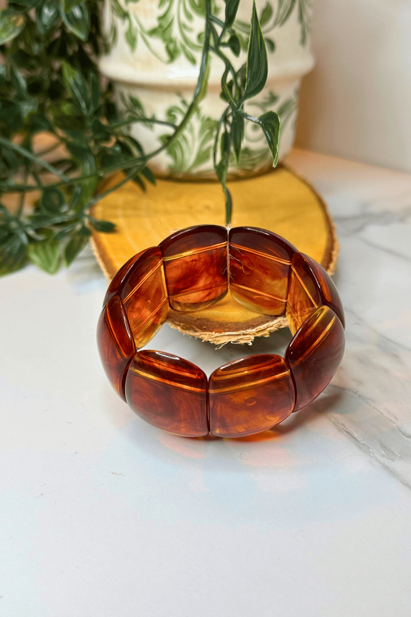 Le bracelet Aurya – Ambre incarne l’élégance chaleureuse avec ses reflets bruns dorés aux nuances translucides.