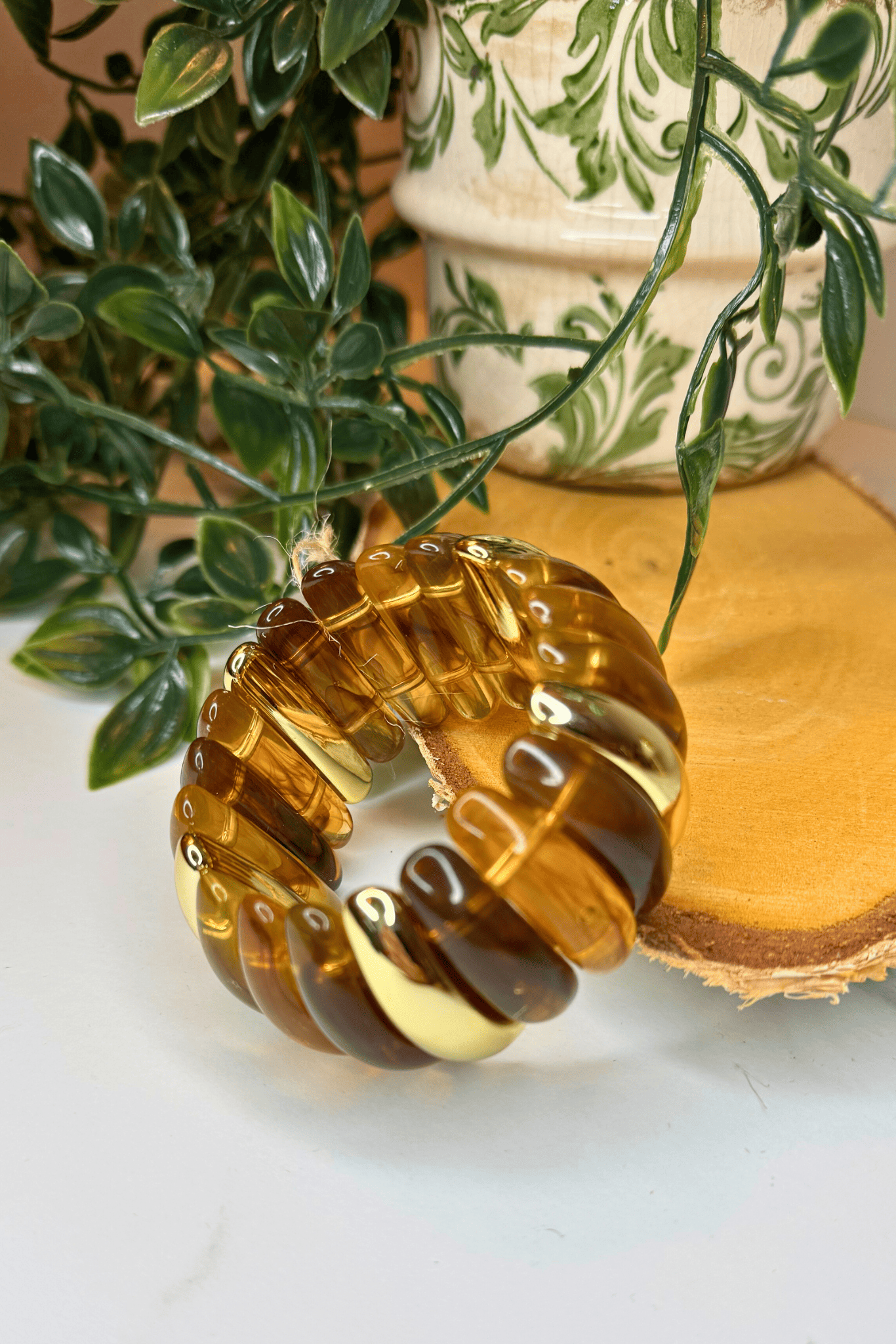 Élégant et audacieux, le bracelet Aurya attire tous les regards avec ses maillons larges aux reflets ambrés et dorés.