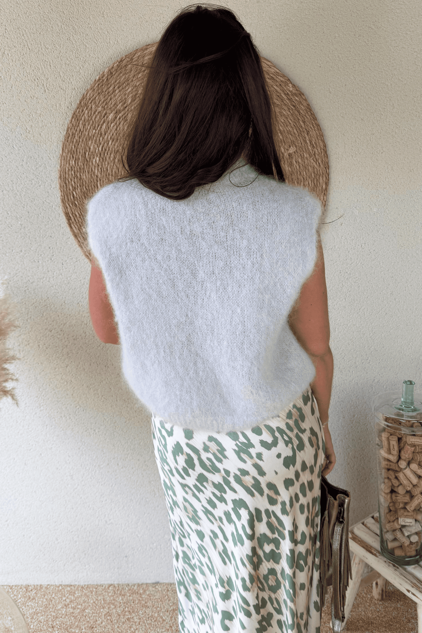 Un indispensable raffiné, à la fois doux et lumineux. Confectionné en kid mohair, ce pull sans manches séduit par sa maille vaporeuse et son toucher délicat.
