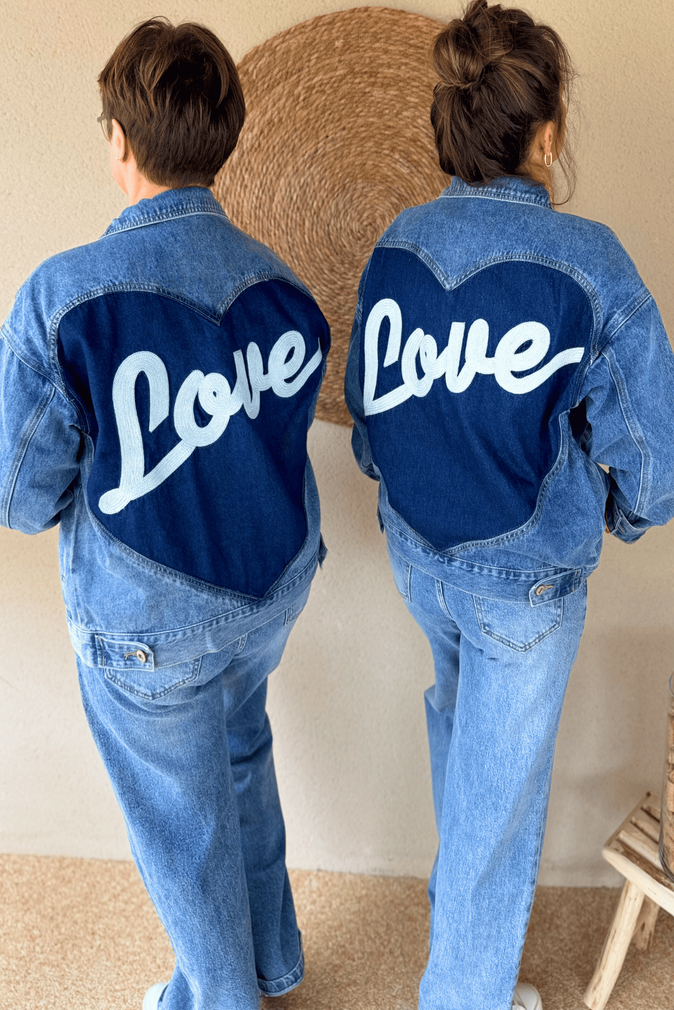 La veste en jean LOVE, c’est l’alliance parfaite entre style iconique et touche unique.